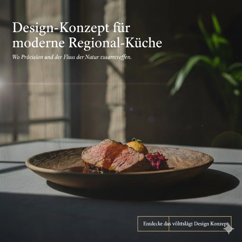 Ein Design-Konzept für moderne Regional-Küche. Fokus auf Licht, Textur und das Erlebnis feiner Kulinarik.